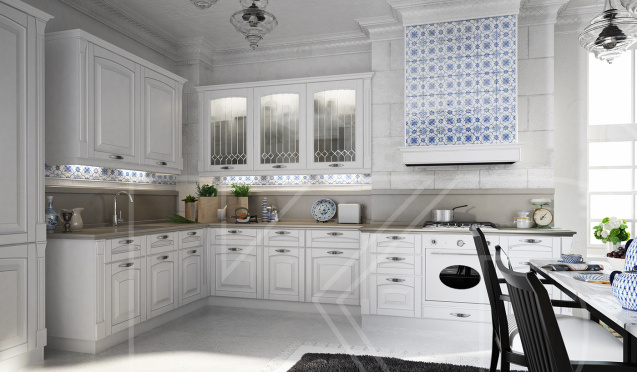 Производители выпускают кухни белого цвета в разных стилях. Для богатых и роскошных интерьеров подойдут классические модели, которые легко узнать по следующим чертам: