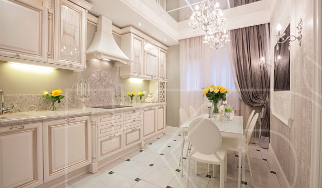 Широкий ассортимент. В оттенках беж выполняют классические, скандинавские, минималистичные гарнитуры, а также версии в стилях лофт, хай-тек, модерн, неоклассика.