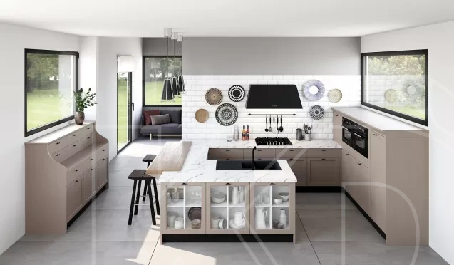 Широкий ассортимент в каталоге кухонь. В бежевом выполняют классические и скандинавские модели, а также версии в стилях неоклассика, кантри, лофт, хай-тек, минимализм, эко.