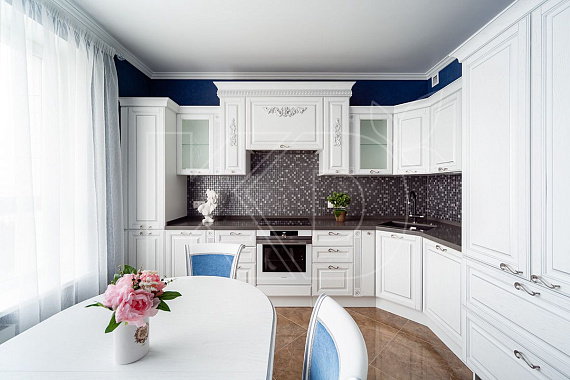 • Комфортностью. Рабочие поверхности в больших угловых кухнях размещаются с двух сторон, позволяя готовить всей семьей или небольшой компанией.