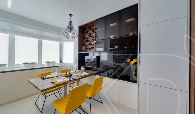 Г-образная кухня – в ней шкафы и столешницы располагаются вдоль двух смежных стен, образуя L-образную форму. Такое решение превосходно сочетается с помещениями открытой планировки, поскольку оно создает плавный переход между кухней и прилегающими помещениями.