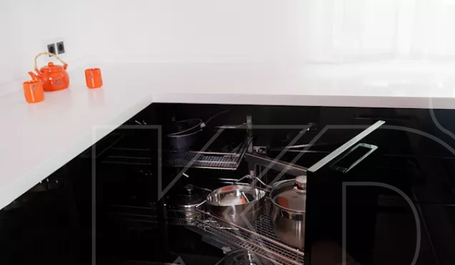 Угловой кухонный гарнитур черного цвета характеризуется современным дизайном с угловатыми шкафами и столешницами, которые создают смелый и яркий вид. Такую угловую кухню можно персонализировать с помощью различных текстур, отделки и материалов – матовые черные шкафы или блестящие черные столешницы помогут создать уникальное и индивидуальное пространство.