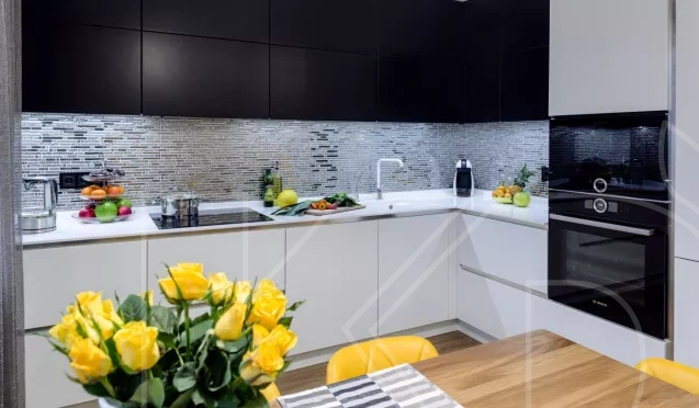 Белый — классический цвет, который прекрасно сочетается с черным. Контраст между черным и белым создает потрясающий визуальный эффект, добавляющий кухне глубины и объема. Белый фартук или столешница на черной кухне могут стать смелым заявлением и создать современный, шикарный вид.