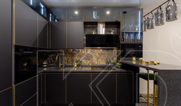 Черная кухня – один из актуальных трендов, который можно использовать в качестве основы дизайнерского решения. Такой вариант выглядит неординарно и шикарно на большой площади, например, в квартирах с планировкой студии. Для небольшого помещения подойдет комбинированный вариант кухонного гарнитура, дополненный: