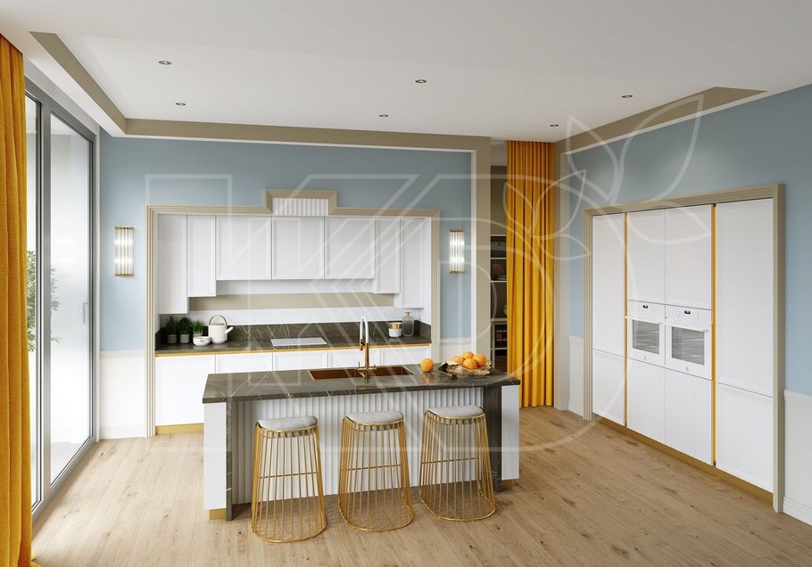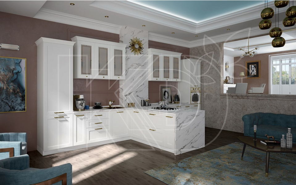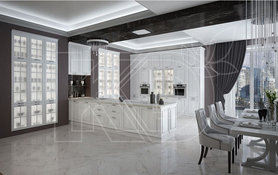 Дизайн белой кухни в стиле классика