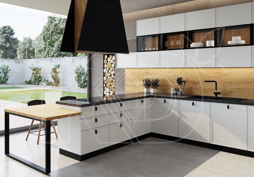 - Яркость. Белый цвет визуально расширяет пространство, он уместен как на просторных, так и на компактных кухнях. Такая мебель не затеряется в интерьере и будет привлекать к себе внимание.