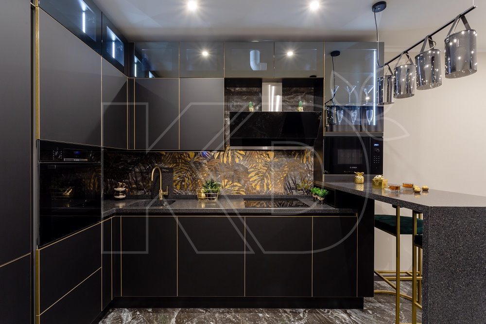 Чтобы П-образная кухня вписалась в интерьер максимально гармонично, расстояние между параллельными сторонами должно составлять, как минимум 120 см. В этом случае не возникнет сложностей при открывании духовки и дверец шкафов.