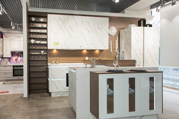 У крупных производителей есть фирменные салоны по всей России. В них представлены выставочные образцы кухонных гарнитуров. Там их можно рассмотреть и попробовать в действии: убедиться в удобстве ручек, плавности хода выдвижных ящиков и надежном закреплении фасадов. Мебель можно потрогать, открыть и закрыть. Некоторые производители предлагают даже поджечь или поцарапать элементы гарнитура, чтобы понять, как ведут себя его поверхности приближенных к реальности условиях.
