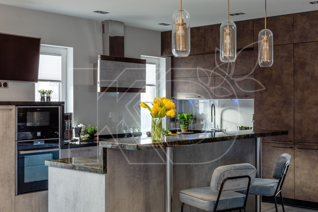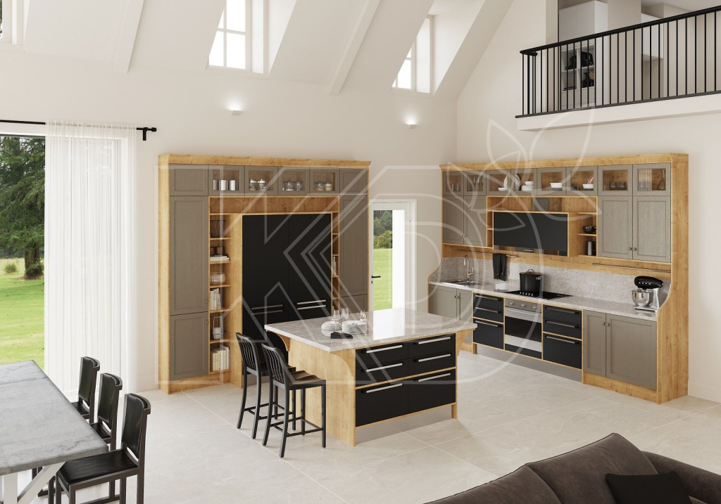 В просторных квартирах-студиях и загородных домах кухни становятся частью жилого пространства. Чтобы переход из одной зоны в другую был максимально незаметным, необходимо отказаться от верхних шкафов и большого количества декоративной отделки на фасадах.