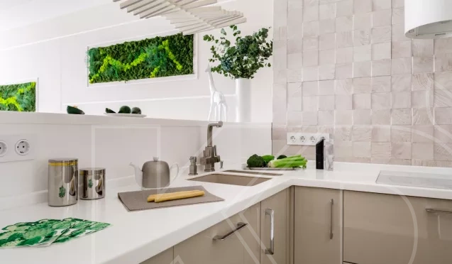 Кухни в стиле неоклассика сочетают в себе черты модерна и классики. Для таких комплектов характерна простота форм, симметричность и визуальная воздушность, достигаемая за счет нейтральных оттенков. При оформлении интерьера с комплектом в стиле неоклассика не следует использовать детали, создающие дополнительное сияние. Например, керамическую плитку и натяжные потолки. Лучше отдать предпочтение матовым фактурам – древесине, тканям или камню.