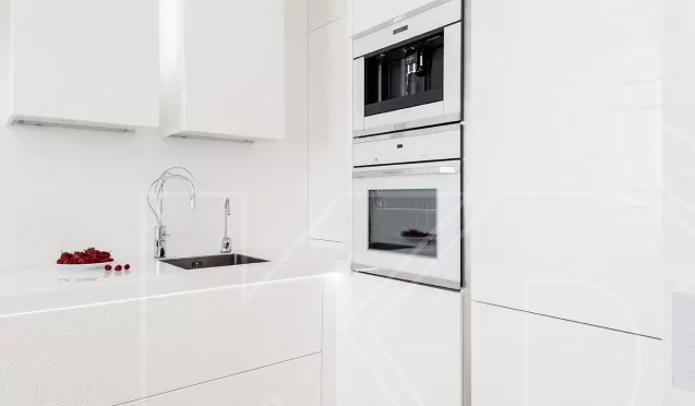 Модели с гладкими фасадами выполняют в современных стилях – хай-тек, модерн, минимализм. Данные решения отличаются отсутствием декоративных элементов, простотой и лаконичностью. Кухонная техника для подобных комплектов подбирается встраиваемая, а все системы хранения скрытые. Фурнитура может быть утопленной или максимально упрощенной и функциональной.