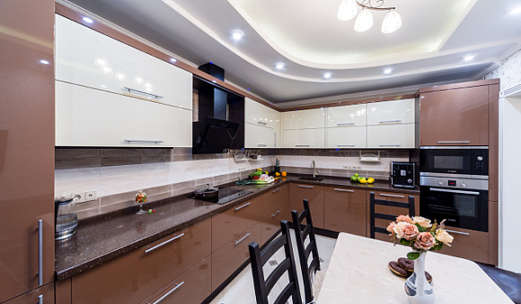 Приобрести глянцевый комплект мебели в любом цвете вы сможете в бренда «Кухонный двор». Здесь можно заказать дизайн-проект по индивидуальным замерам или купить готовый гарнитур.