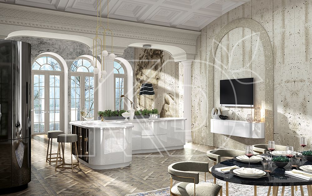 Если кухня имеет квадратную форму или нестандартную, в этом случае клиент может предпочесть самые разные варианты планировки: кухню-остров и полуостров, Г-образную, линейную и другие.