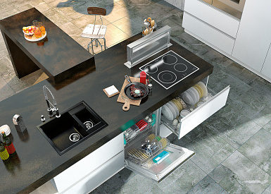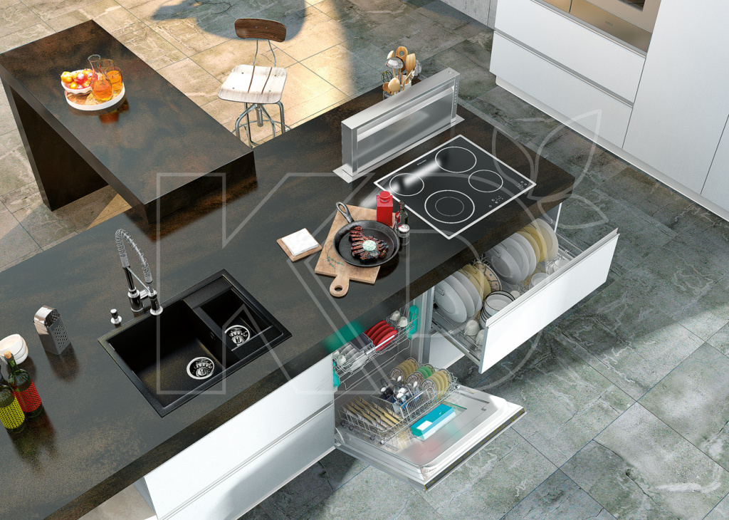 Рабочая поверхность эксплуатируется ежедневно – на ней режутся овощи и фрукты, смешиваются салаты, готовятся ингредиенты для первых и вторых блюд, размещается посуда и различные приспособления. Поэтому столешница должна выдерживать длительные механические нагрузки, а также воздействие влаги и бытовой химии.