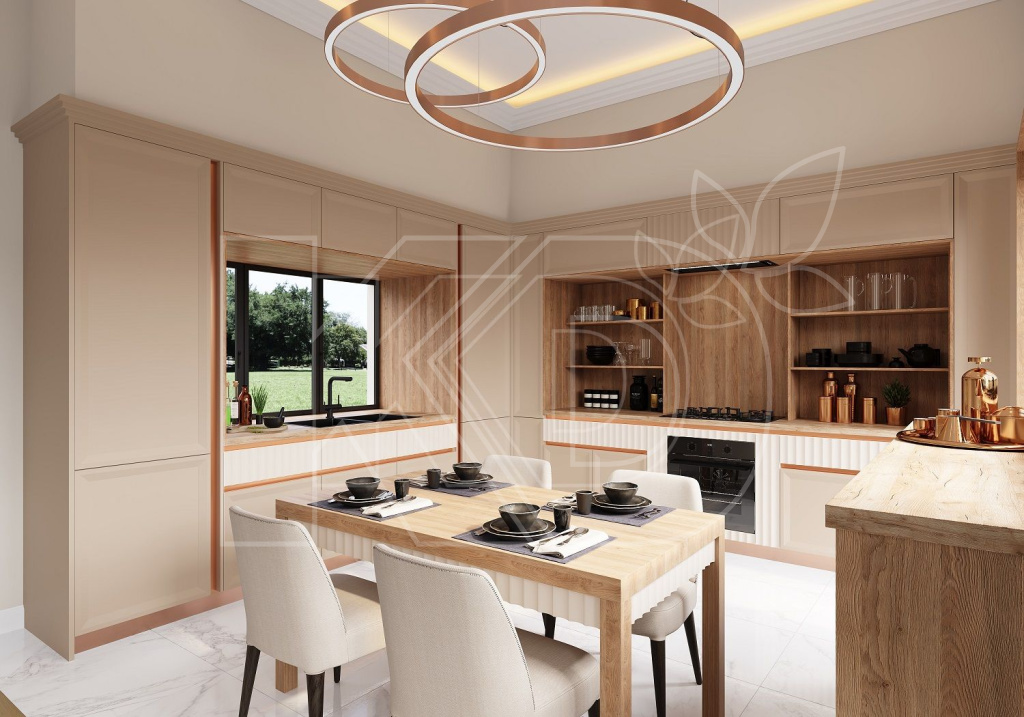 Современный стиль. Такая кухня выглядит просто, но изысканно. Отделка может быть совершенно разной, начиная от молочных моющихся обоев и заканчивая фактурной штукатуркой. При этом не стоит использовать больше трех цветов.