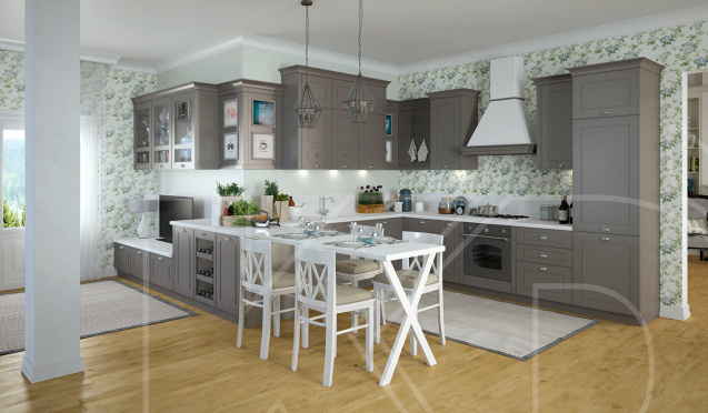 В бренда «Кухонный двор» вы сможете купить кухню для большой площади. Для производства мебели мы используем качественные материалы – натуральное дерево и МДФ.