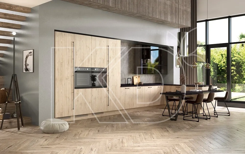 Компания «Кухонный Двор» производит кухни на заказ из натуральной древесины бука, дуба и ясеня, а также качественного МДФ. Преимуществами наших гарнитуров являются следующие показатели: