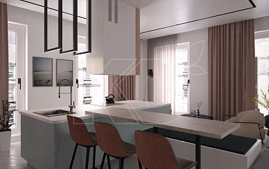 Благородно и дорого смотрятся не только бежевые и белые, но и другие светлые версии. Например, очень интересный вариант – розовый гарнитур с матовыми фасадами. С помощью такой мебели можно создать стильный интерьер даже на небольшой площади. Чтобы не перегрузить пространство розовой палитрой, ее можно разбавить белыми или светло-серыми оттенками.