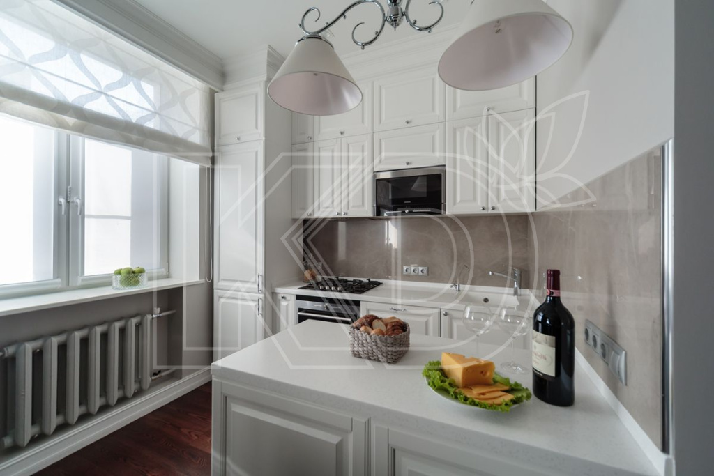 Получить максимум пользы на классической кухне с барной стойкой помогут держатели для посуды, шейкер, соковыжималка и другие бытовые приборы.