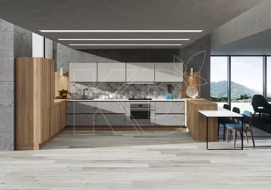 Для отделки стены на кухне следует выбрать влагоустойчивые материалы. Хорошо зарекомендовала себя керамическая плитка. Можно использовать виниловые и пробковые обои, специальную краску или декоративную штукатурку. Выбирая отделку для стен, учитывайте, что кухонная мебель не должна теряться на ее фоне. Поэтому лучшим вариантом будут однотонные поверхности.