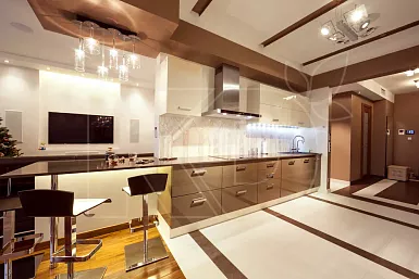 После чистовых работ можно переходить к монтажу и установке кухонного гарнитура. Желательно, чтобы сборкой и интеграцией мебели занимались специалисты. Они быстро соберут кухню, встроят ее в нужное место, установят плиту, мойку и столешницу. Подключение электрооборудования тоже рекомендуется доверить профессионалам.