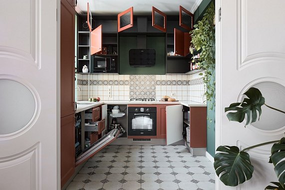 Иногда стандартные модульные кухни это не лучший вариант. Особенно это касается небольших помещений, нестандартных планировок и объединённых пространств. В таких случаях индивидуальный заказ позволяет максимально эффективно использовать площадь и создать кухню на заказ по индивидуальным размерам, идеально вписывающуюся в интерьер.