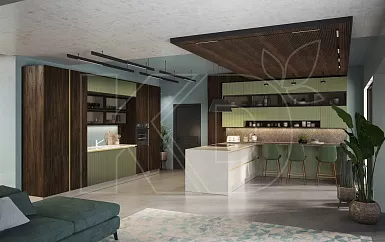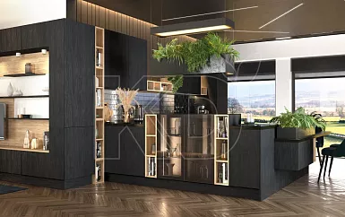 ЛДСП используют и при создании дорогих кухонь по размерам на заказ. Комбинация этого материала с натуральным шпоном позволяет снизить стоимость изделия, и этим приемом активно пользуются дизайнеры.