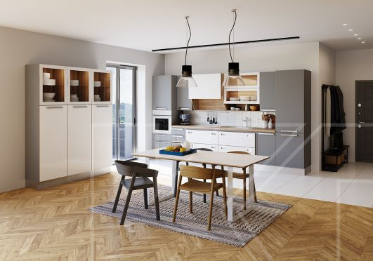 - Скандинавская кухня обязательно должна быть светлой. Обилие света — это обязательное условие.