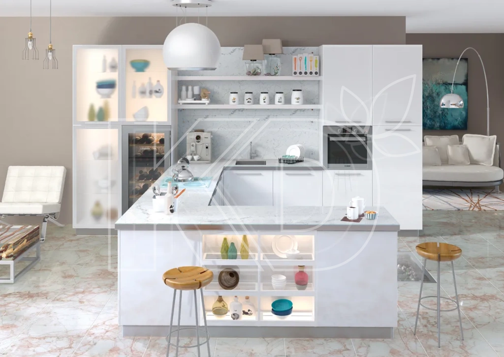 Столешницы из искусственного камня красивы, но все знают, что при их использовании неизбежны мелкие царапины. Тем не менее, заказать кухню по индивидуальным размерам с такой столешницей будет отличным решением.