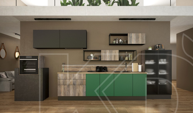 Линейная кухня — идеальный тип мебели для ситуаций, когда кухонная мебель остается открытой. Так в кухнях, которые выполнены в больших помещениях, включающих в себя гостиную и столовую, можно подумать о выделении отдельной стены под кухню. В этом случае совмещенная с гостиной кухня будет прекрасно сочетаться в плане цветовой палитры и стилистической направленности.
