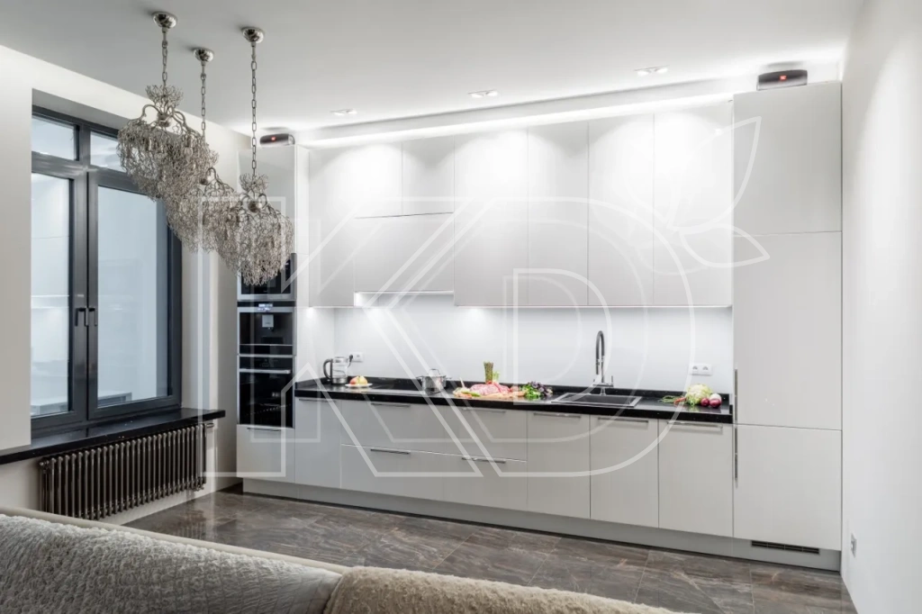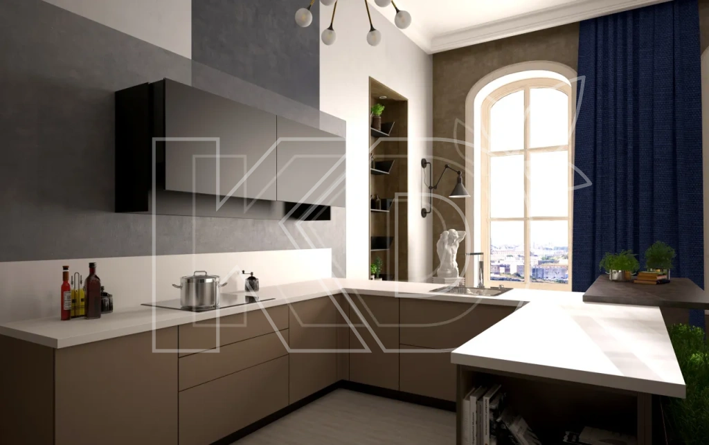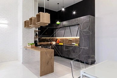 Для просторной квартиры-студии идеальным решением станет островная модель кухни. Гарнитур с такой планировкой подходит для зонирования помещения, потому что остров способен визуально отделить кухню от остального пространства.