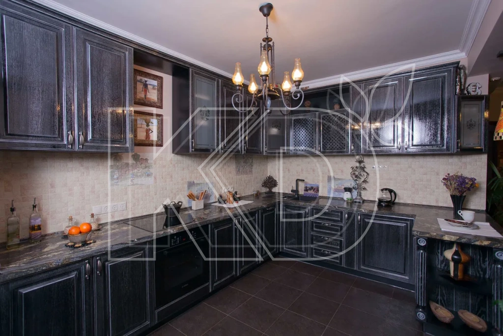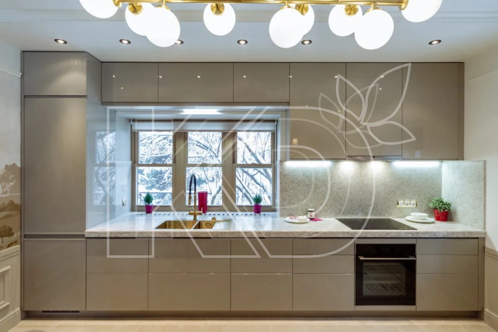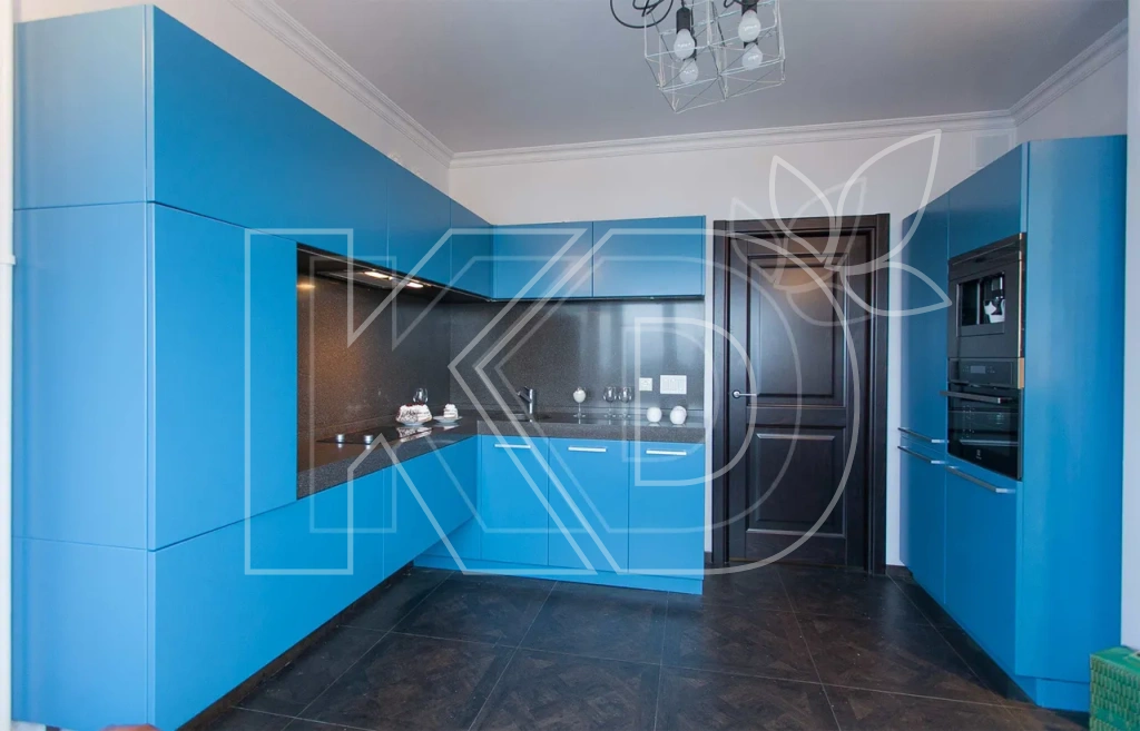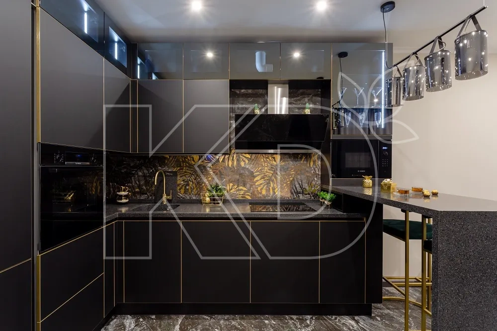 Г-образная планировка кухни обеспечивает комфортное для работы пространство. При такой форме лита, раковина и все нужные шкафы находятся под рукой.