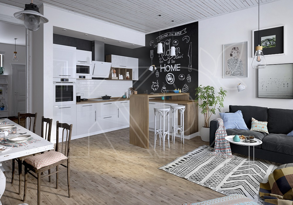 Белый цвет + натуральные древесные фактуры = Скандинавия! Такие замечательные варианты кухонь известны всем! Жизнерадостный и просторный стиль «сканди» по праву завоевал особое место в сердцах людей по всему миру. На таких кухнях дышится и готовится невероятно легко!