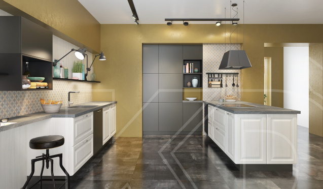Микс эстетики в разнообразии стилистических направлений позволяет выбрать из представленного на рынке разнообразия конфигураций и цветов, не только классические и традиционные кухни в серых цветах, но и модели в духе авангардных решений. Мебельные фасады с контрастными вставками выглядят более интересно, при этом позволяют подчеркнуть свое отношение к актуальным трендам.