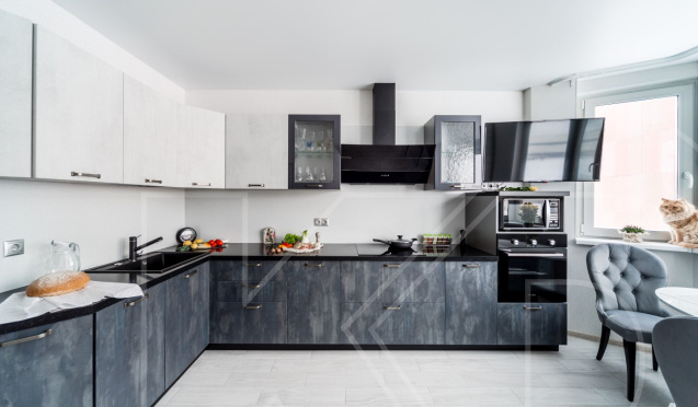 Отделка серого кухонного гарнитура