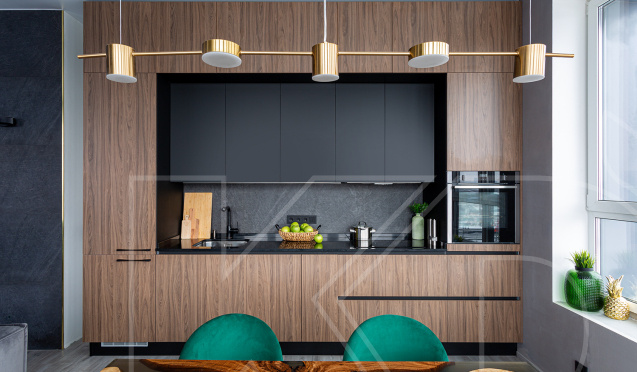 Серые кухни в современной стилистике лучше обустраивать в совокупности с натуральным деревом. Такая палитра создаст идеальное пространство, которое может «переходить» в прихожую или гостиную. Серый глянцевый цвет любит много света. Если сделать кухонное помещение проходным, то обязательно по периметру всех помещений необходимо предусмотреть подсветку в нескольких вариациях.