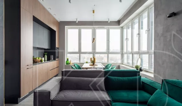 Темный кухонный гарнитур в помещении