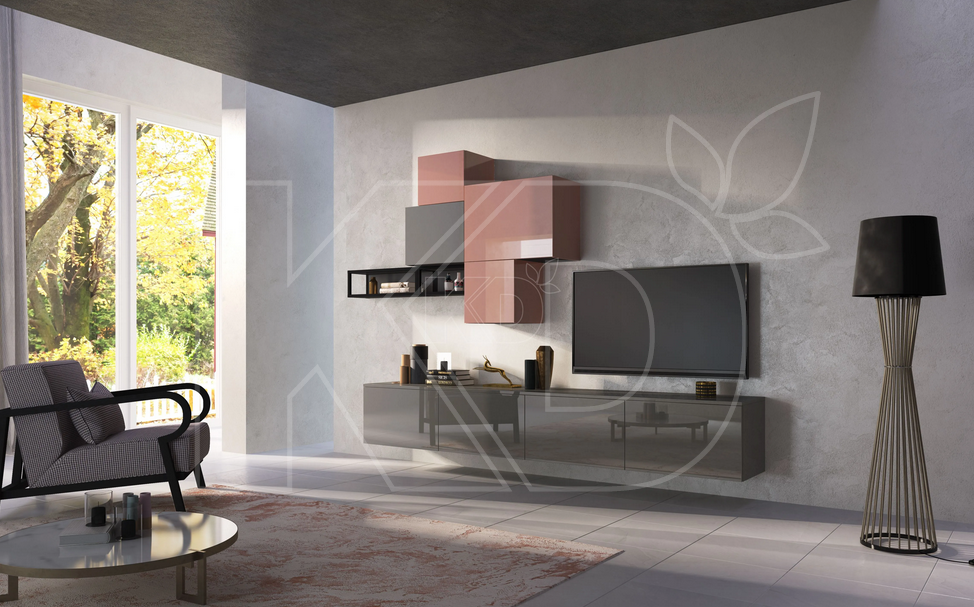 Придать выразительность фасадам и зрительно увеличить площадь небольшой гостиной поможет мебель с покрытием из отражающей свет белой, бежевой, светло-серой ультраглянцевой эмали. Создать ощущение легкости в интерьере и усилить иллюзию свободы и простора помогут такие дизайнерские решения, как комбинация глухих фасадов с асимметричными открытыми полочками, а также отсутствие цоколей – благодаря этому будет казаться, что гостиная буквально парит в воздухе.