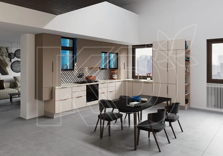 Конструкция кухни в стиле модерн тщательно продумана и включает в себя современную фурнитуру, надежные выдвижные и выкатные механизмы. В большинстве случаев ручки имеют интегрированную конструкцию или отсутствуют вовсе. Вместо них производители используют инновационные системы открывания фасадов, такие, как Space Line. Безупречно ровные и гладкие шкафы органично сливаются с окружающим интерьером – а чтобы получить доступ к их внутреннему содержимому, нужно лишь слегка нажать на лицевую панель.