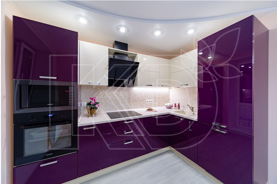 - Глянцевое покрытие шкафов рассеивает освещение. Это позволяет визуально сделать кухню более воздушной.