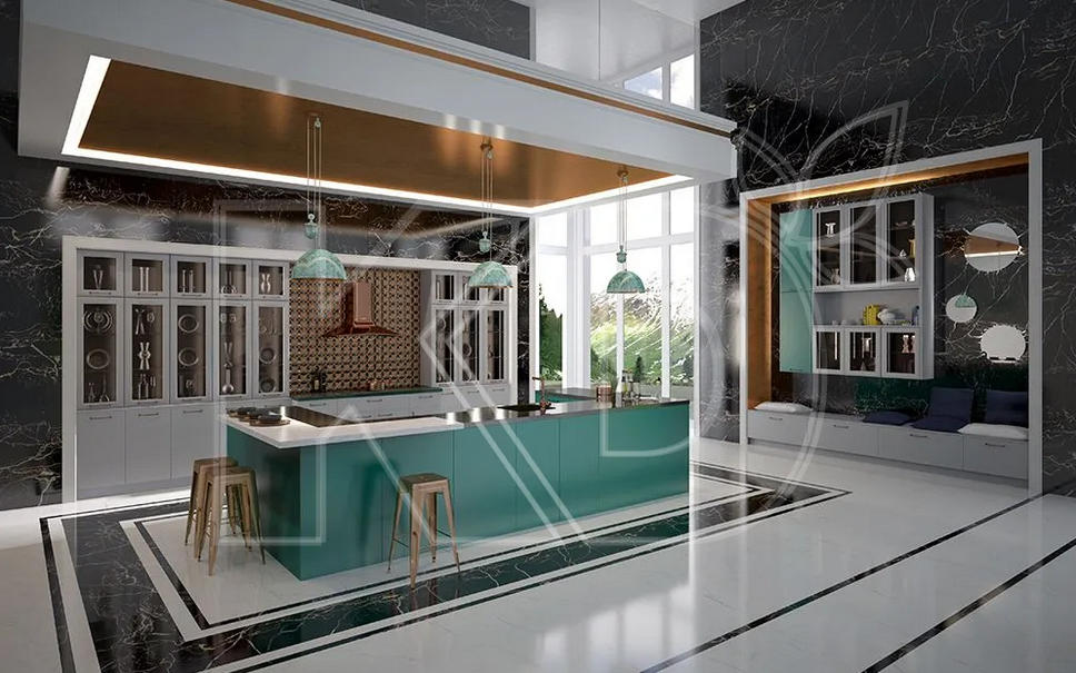 Стоит учесть, что оливковый обладает хорошей комбинаторностью, что можно использовать при объединении нескольких цветов в рамках одного гарнитура. Это могут быть сочетания с природными оттенками древесины, всеми цветами зеленого, серым, бежевым, золотистым. Наибольшей популярностью пользуются теплые оттенки палитры. Подобное разнообразие открывает поле для экспериментов как в части сочетания фасадов, так и в части отделки фотопечатью.