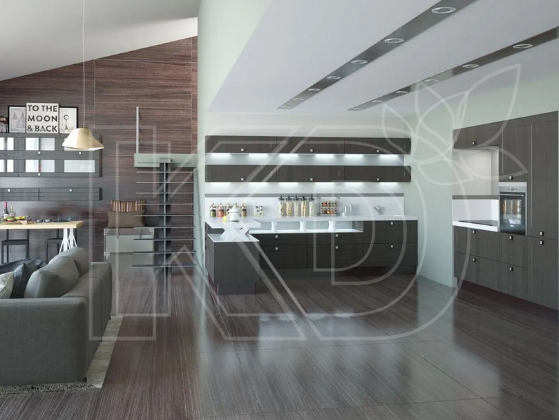 Только европейская фурнитура, с помощью которой можно использовать каждый сантиметр свободного пространства даже в угловой части. Доступны бесконтактные механизмы открывания и сложные рейлинги, благодаря которым фасады верхних модулей открываются полностью вертикально, экономя место. Данные мелочи делают мебель не только эффектной, но и эргономичной.