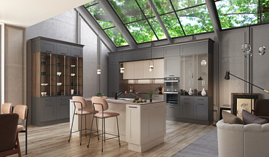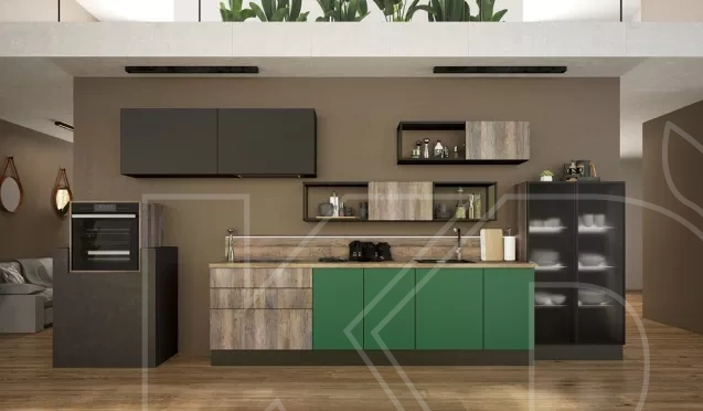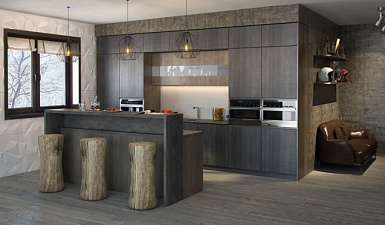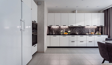 На первом этапе необходимо выбрать цвет стен, потолка и пола. Понять, какими будут фасады гарнитура – глянцевыми или матовыми, плоскими или филенчатыми.