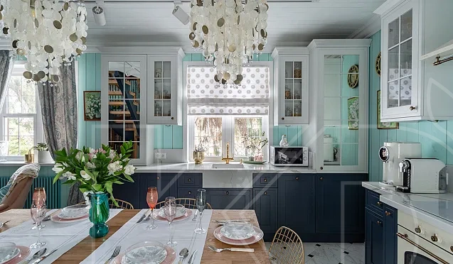 Более авангардные решения, в которых на фасадах мебельного гарнитура применяются вставки из натурального дерева или белые блоки – смотрятся более свежо в любой обстановке вне зависимости от степени освещенности. Они понравятся почитателям стилей прованс, эклектика и модерн.