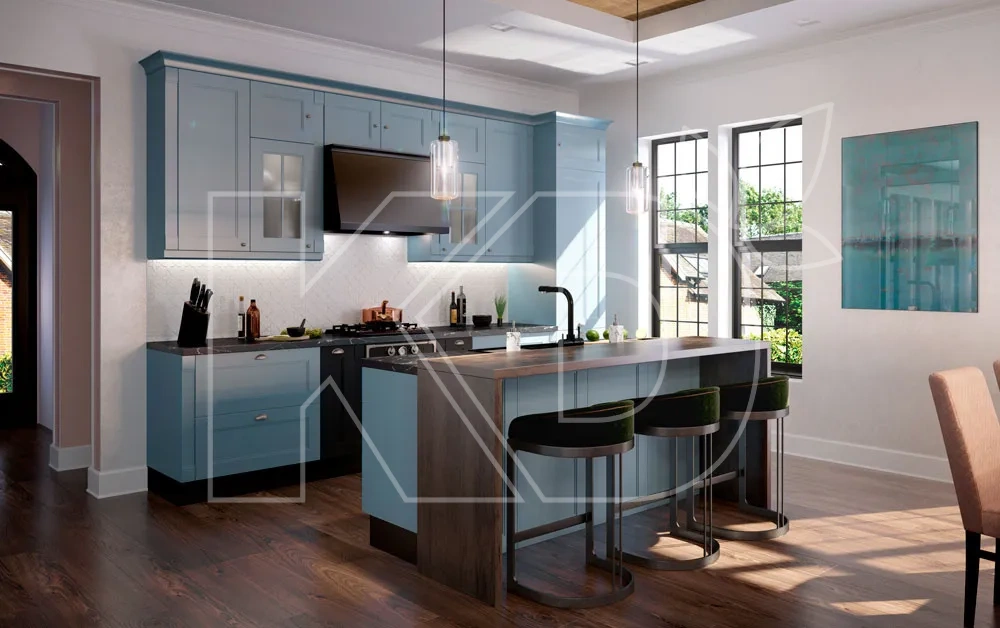 Яркие глянцевые кухни остались далеко в прошлом. Сейчас они считаются явным антитрендом. Если вы хотите остановиться на сочном оттенке, то выбирайте матовый финиш. Он не сделает поверхности перегруженными. Если ваш выбор – спокойный и глубокий оттенок, то зеркальное покрытие только подчеркнет его красоту.