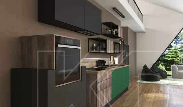 Рабочая поверхность из натурального дерева – прекрасный вариант для кухонной мебели в зеленых тонах. Природные текстуры позволяют создать гармоничный и уютный интерьер.