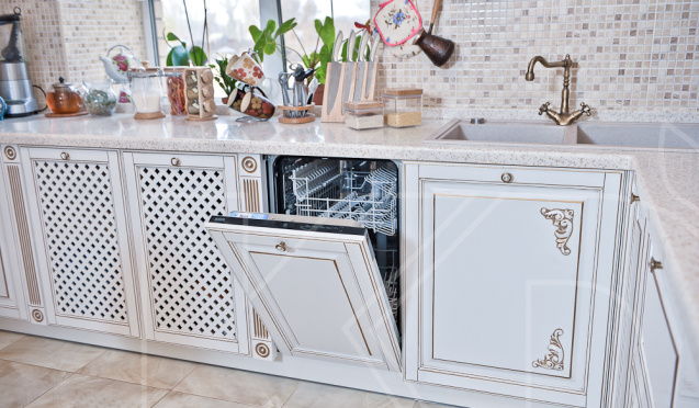 Данный цвет требует подобающего окружения. Например, золотые фасады гармонируют с дубовыми и каменными элементами. Пластиковые детали удешевят комплект.