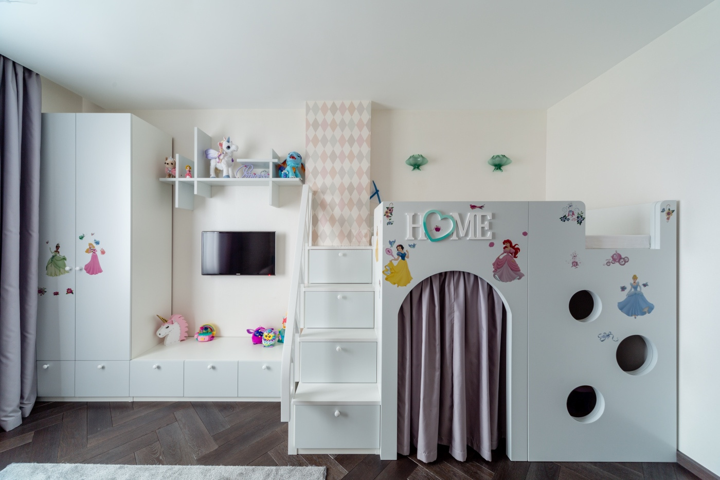 Благодаря тому, что наши клиенты воплотили невероятной красоты дизайн-проект у себя дома с помощью корпусной мебели бренда "Кухонный Двор", теперь будут счастливых и веселых детей станет гораздо больше, ведь здесь найдется место для огромной и дружной бренда. Мебель для детской комнаты похожа на ванильное молоко: нежное и красивое. Фасады детского гарнитура выполнены из экологически чистого материала MDF, который проходит многоступенчатую систему проверки, как и материалы покрытия, которые делают детскую мебель прочной, долговечной и безопасной. В этом варианте оформления детской все продумано до мелочей: здесь и вместительный шкафчик для нарядов, и удобная кровать, и даже собственной королевство за ширмой. Есть, где с подружками поиграть и от родителей в случае чего спрятаться.