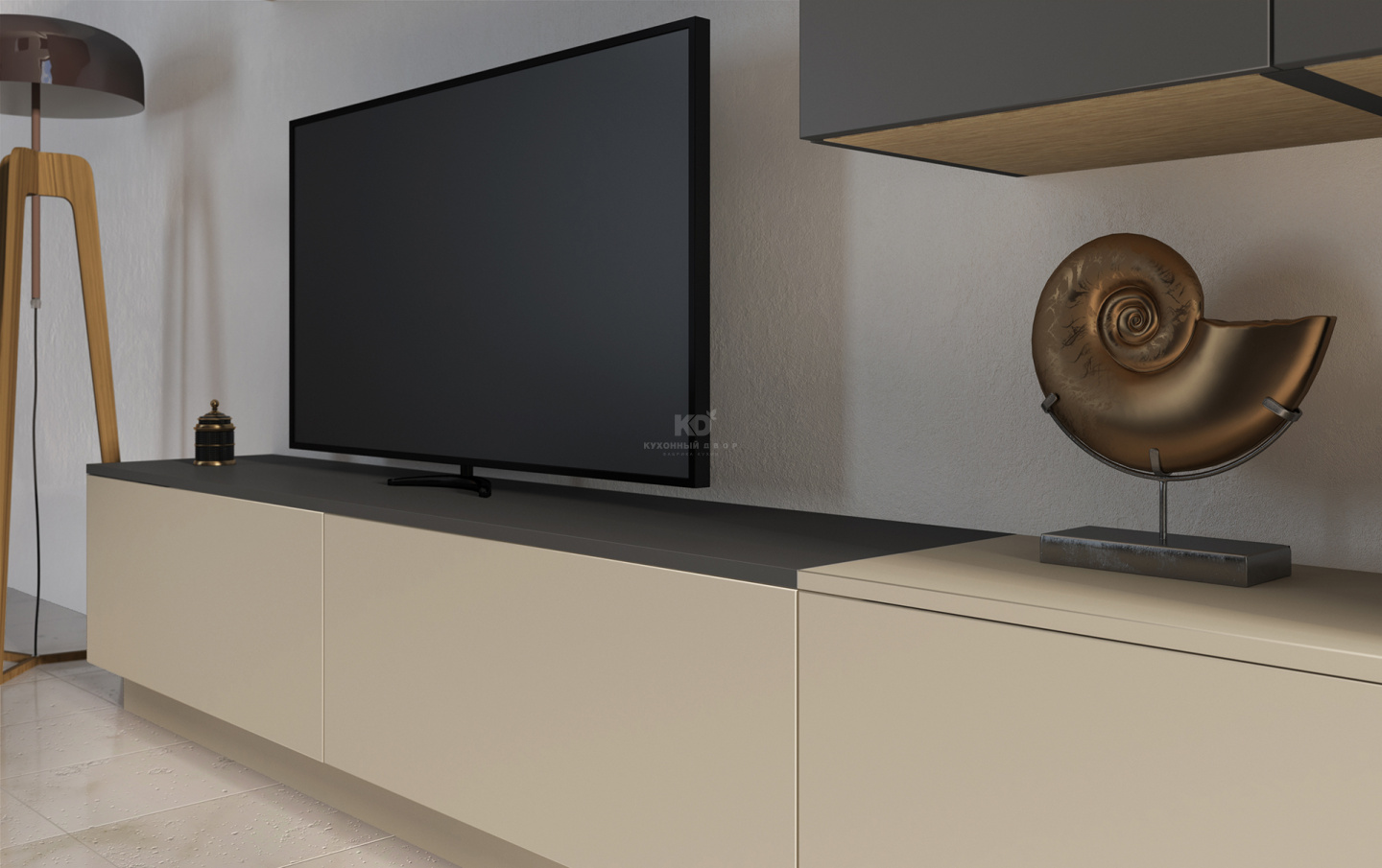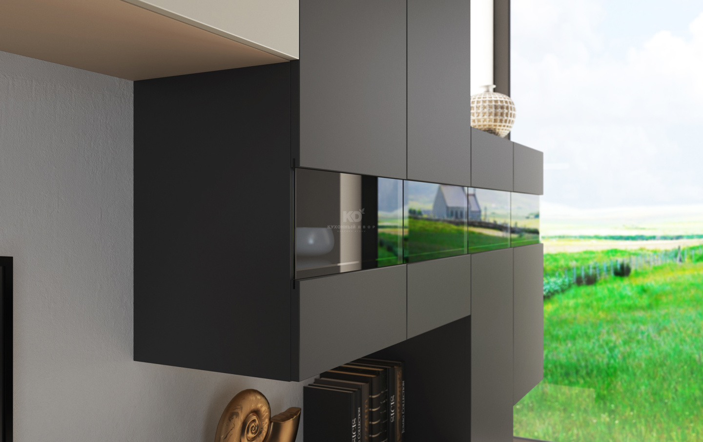 Желаете создать уникальную гостиную в стиле модерн? Тогда оцените цвета и фактуры «Ханны Натив»! Эта модель с бархатистыми фасадами «Extra Touch Matt» использует для построения своей архитектуры идеальные комбинации оттенков. Кромки здесь вторят цветам фасадов, делая каждую зону интерьера объёмной и выразительной. Такое свойство – настоящий подарок для тех, кто понимает важность грамотного зонирования. С «Ханной Натив» Вы можете свободно расставлять акценты на тех или иных уголках гостиной, создавая единый образ на основе неповторимой игры контрастов. Это концепция «Инь-Ян» во всём ее совершенстве!