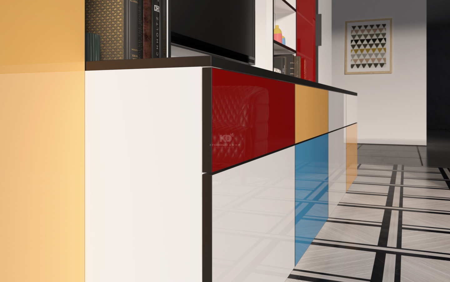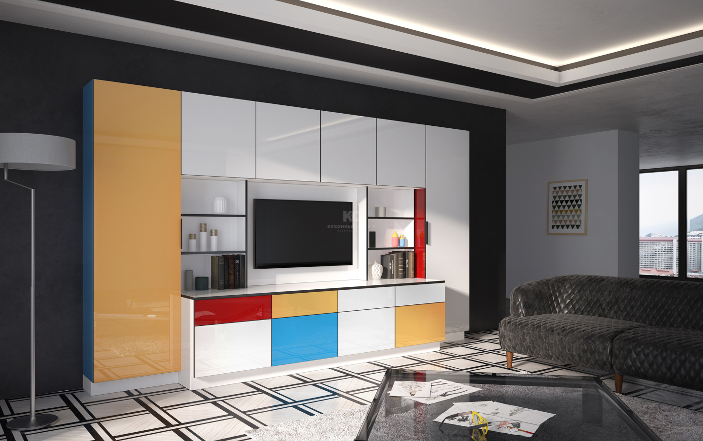Облик гостиной «Мондриана» вдохновлён работами великого нидерландского абстракциониста по имени Пит Мондриан. С этой моделью Ваш интерьер – произведение искусства!